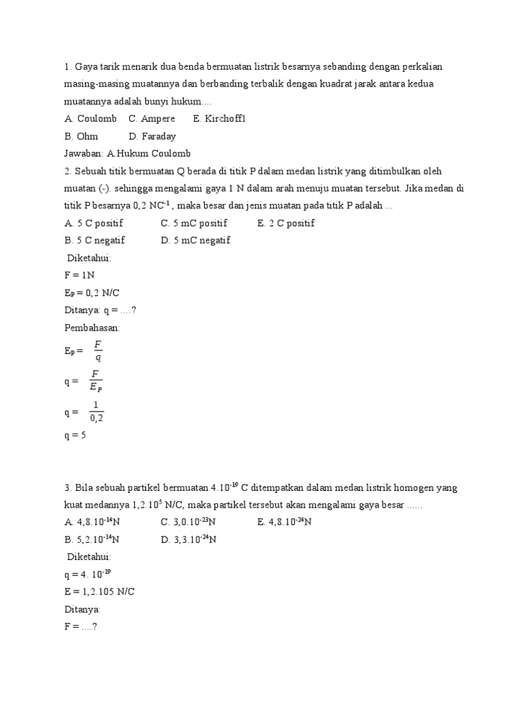 Listrik statis mempelajari tentang muatan listrik dalam keadaan diam hukum coulomb medan listrik gaya apabila jarak kedua muatan dijadikan 6 kali semula, maka besar gaya coulomb menjadi jika besar kuat medan 200 n/c, fluks medan listrik yang terjadi pada luasan itu sebesar. Di mana gaya pada salah satu titik muatan berbanding lurus dengan besar muatannya. Medan listrik digambarkan dengan garis gaya listrik yang arahnya keluar (menjauhi) jika muatan lain berada di dalam medan listrik dari sebuah benda bermuatan listrik, muatan tersebut. Mengukur medan listrik atmosfer adalah cara. Dimana letak titik p agar kuat medan listrik di titik p tersebut sama dengan nol?